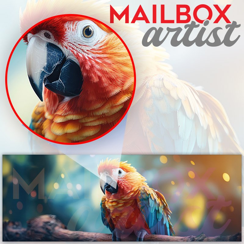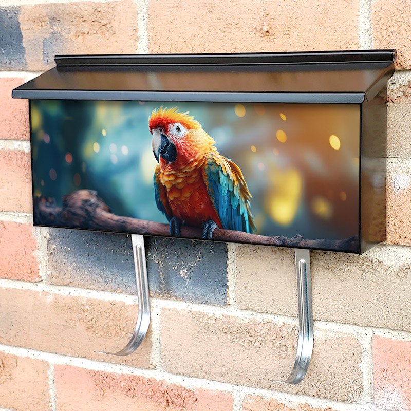 Applying your A Beautiful Colorful Parrot Is Perched On Tree Branch townhouse / ranch mailbox cover it’s pretty easy to convert your mailbox to a special and unique item. These covers require a flat surface, so they work with townhouse / ranch mailboxes that do not have any embossed decoration or signs. Magnetic mailbox covers work with steel boxes, for aluminum and plastic boxes we offer the self-adhesive vinyl covers. In case your mailbox doesn’t work with these covers, you can purchase the preinstalled cover on a brand new mailbox as well. Also, you can create your custom townhouse / ranch mailbox cover using you own pictures, adding your name, street number, etc.