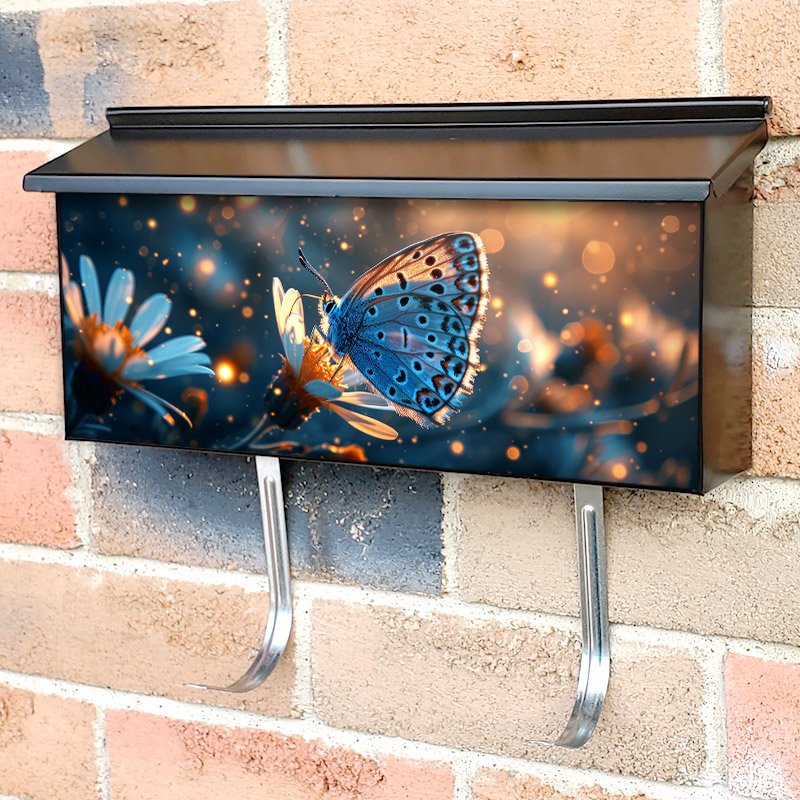 Applying your A Blue Butterfly On A Flower With Lights Behind It townhouse / ranch mailbox cover it’s pretty easy to convert your mailbox to a special and unique item. These covers require a flat surface, so they work with townhouse / ranch mailboxes that do not have any embossed decoration or signs. Magnetic mailbox covers work with steel boxes, for aluminum and plastic boxes we offer the self-adhesive vinyl covers. In case your mailbox doesn’t work with these covers, you can purchase the preinstalled cover on a brand new mailbox as well. Also, you can create your custom townhouse / ranch mailbox cover using you own pictures, adding your name, street number, etc.