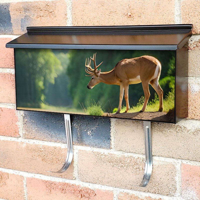 Applying your A Deer Stands On A Rock By A River townhouse / ranch mailbox cover it’s pretty easy to convert your mailbox to a special and unique item. These covers require a flat surface, so they work with townhouse / ranch mailboxes that do not have any embossed decoration or signs. Magnetic mailbox covers work with steel boxes, for aluminum and plastic boxes we offer the self-adhesive vinyl covers. In case your mailbox doesn’t work with these covers, you can purchase the preinstalled cover on a brand new mailbox as well. Also, you can create your custom townhouse / ranch mailbox cover using you own pictures, adding your name, street number, etc.