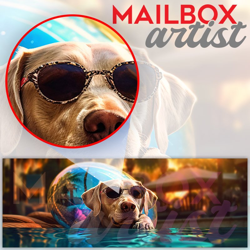 Applying your A Dog Relaxing On A Swimming Ring In A Pool 4 townhouse / ranch mailbox cover it’s pretty easy to convert your mailbox to a special and unique item. These covers require a flat surface, so they work with townhouse / ranch mailboxes that do not have any embossed decoration or signs. Magnetic mailbox covers work with steel boxes, for aluminum and plastic boxes we offer the self-adhesive vinyl covers. In case your mailbox doesn’t work with these covers, you can purchase the preinstalled cover on a brand new mailbox as well. Also, you can create your custom townhouse / ranch mailbox cover using you own pictures, adding your name, street number, etc.