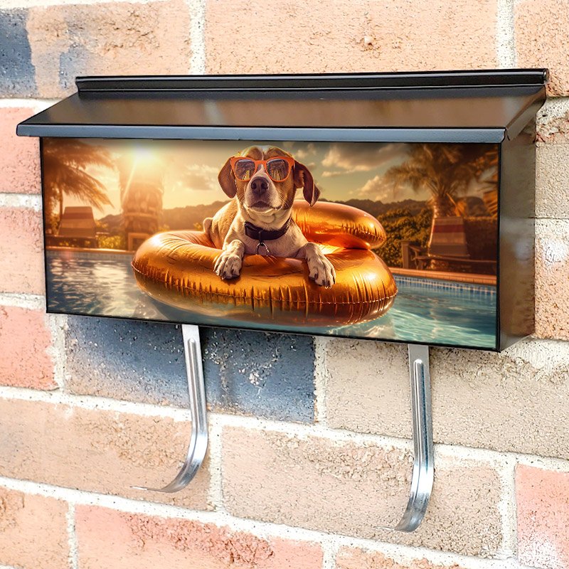 Applying your A Dog Relaxing On A Swimming Ring In A Pool 6 townhouse / ranch mailbox cover it’s pretty easy to convert your mailbox to a special and unique item. These covers require a flat surface, so they work with townhouse / ranch mailboxes that do not have any embossed decoration or signs. Magnetic mailbox covers work with steel boxes, for aluminum and plastic boxes we offer the self-adhesive vinyl covers. In case your mailbox doesn’t work with these covers, you can purchase the preinstalled cover on a brand new mailbox as well. Also, you can create your custom townhouse / ranch mailbox cover using you own pictures, adding your name, street number, etc.