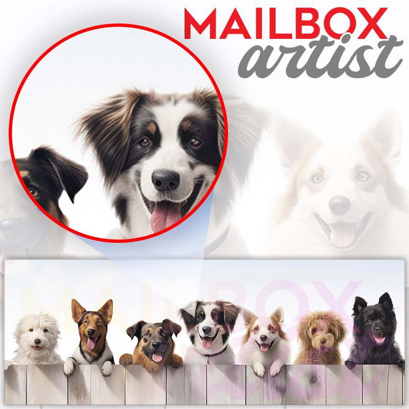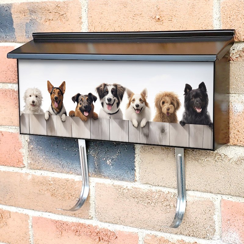 Applying your A Group Of Dogs Are On A Wooden Fence 4 townhouse / ranch mailbox cover it’s pretty easy to convert your mailbox to a special and unique item. These covers require a flat surface, so they work with townhouse / ranch mailboxes that do not have any embossed decoration or signs. Magnetic mailbox covers work with steel boxes, for aluminum and plastic boxes we offer the self-adhesive vinyl covers. In case your mailbox doesn’t work with these covers, you can purchase the preinstalled cover on a brand new mailbox as well. Also, you can create your custom townhouse / ranch mailbox cover using you own pictures, adding your name, street number, etc.