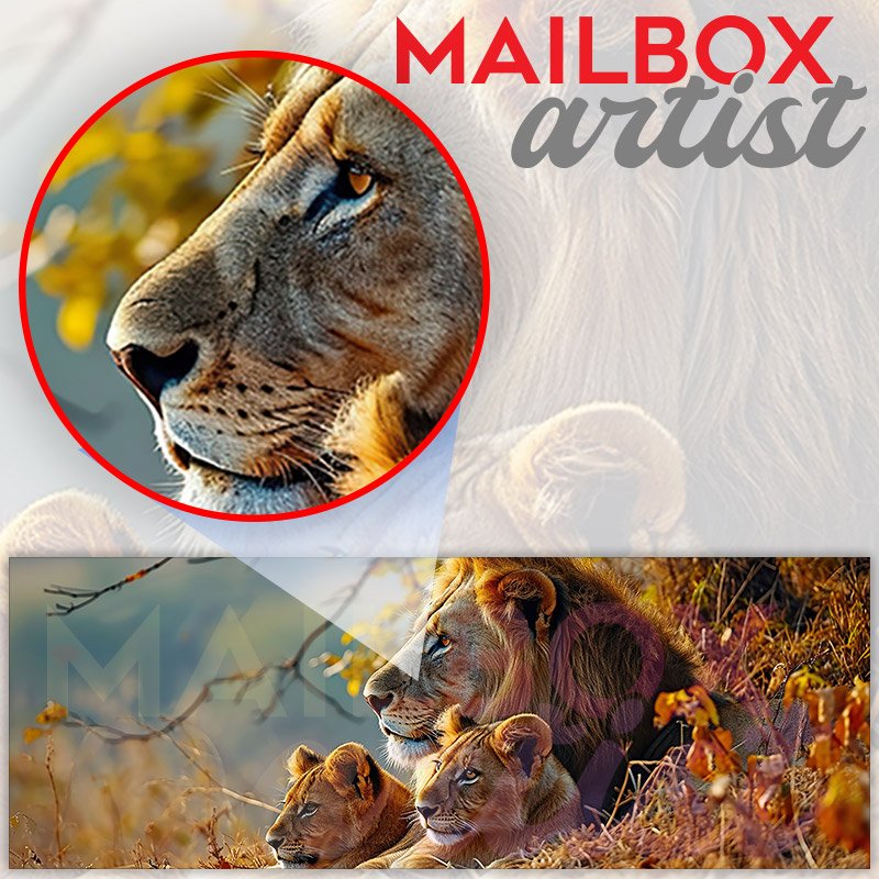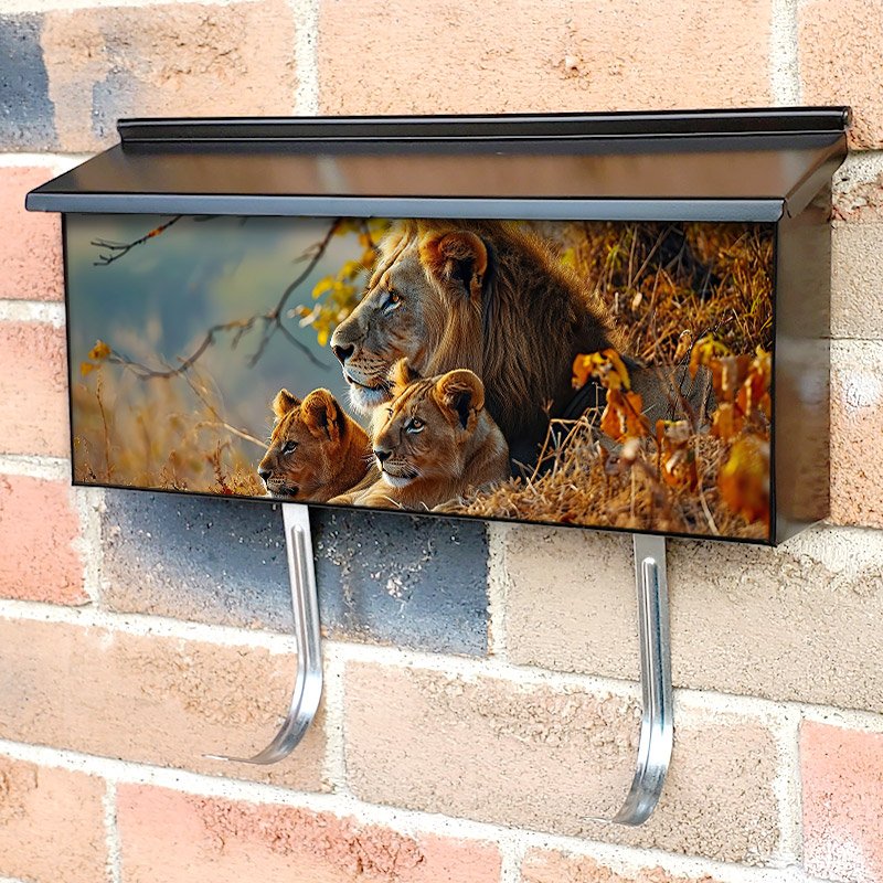 Applying your A Lion With Two Lion Cubs townhouse / ranch mailbox cover it’s pretty easy to convert your mailbox to a special and unique item. These covers require a flat surface, so they work with townhouse / ranch mailboxes that do not have any embossed decoration or signs. Magnetic mailbox covers work with steel boxes, for aluminum and plastic boxes we offer the self-adhesive vinyl covers. In case your mailbox doesn’t work with these covers, you can purchase the preinstalled cover on a brand new mailbox as well. Also, you can create your custom townhouse / ranch mailbox cover using you own pictures, adding your name, street number, etc.