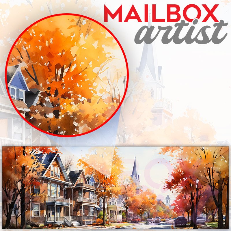 This A Vibrant Watercolor Illustration Showcasing A Cozy American City mailbox design was created by Krisztina Soos