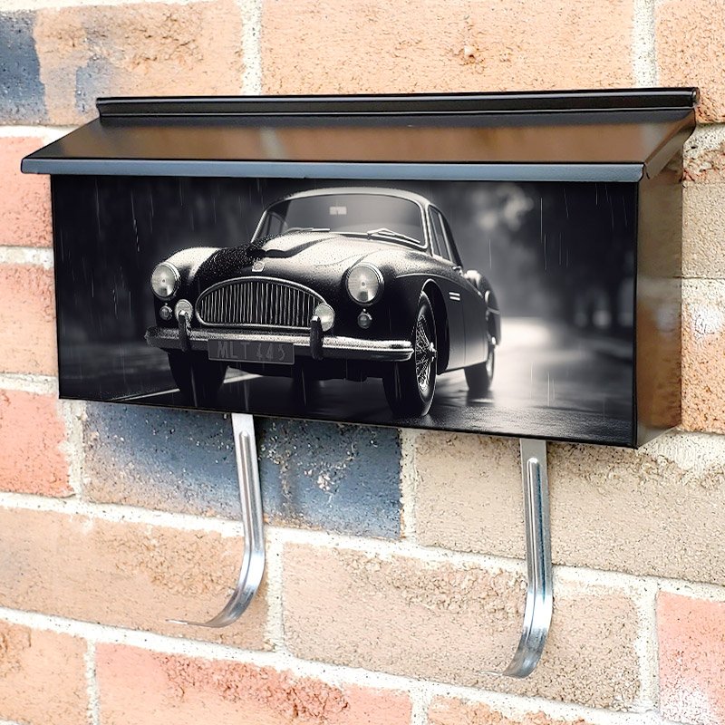 A White Vintage Classic Race Car Elegance Theme Townhouse Mailbox Cover