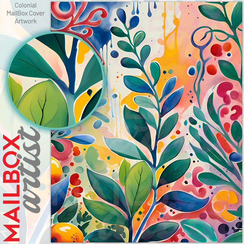 With this Abstract Colorful Garden colonial mailbox cover it’s pretty easy to convert your mailbox to a special and unique item. These covers require a flat surface, so they work with colonial mailboxes that do not have any embossed decoration or signs. Magnetic mailbox covers work with steel colonial boxes only, while self-adhesive vinyl covers are available for aluminum, plastic and steel boxes. We also offer both self-adhesive and magnetic covers with regular opaque white vinyl or reflective vinyl, which works similarly to license plates or road signs. The reflective option makes the entire cover’s surface reflective, ensuring visibility at night. In case your mailbox doesn’t work with these covers, you can purchase the preinstalled cover on a brand new mailbox as well. Also, you can create your custom colonial mailbox cover using you own pictures, adding your name, street number, etc.