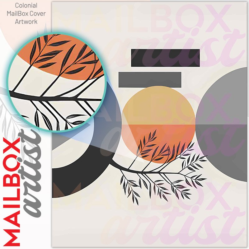 With this Abstract Mid Century Shapes and Plant colonial mailbox cover it’s pretty easy to convert your mailbox to a special and unique item. These covers require a flat surface, so they work with colonial mailboxes that do not have any embossed decoration or signs. Magnetic mailbox covers work with steel colonial boxes only, while self-adhesive vinyl covers are available for aluminum, plastic and steel boxes. We also offer both self-adhesive and magnetic covers with regular opaque white vinyl or reflective vinyl, which works similarly to license plates or road signs. The reflective option makes the entire cover’s surface reflective, ensuring visibility at night. In case your mailbox doesn’t work with these covers, you can purchase the preinstalled cover on a brand new mailbox as well. Also, you can create your custom colonial mailbox cover using you own pictures, adding your name, street number, etc.