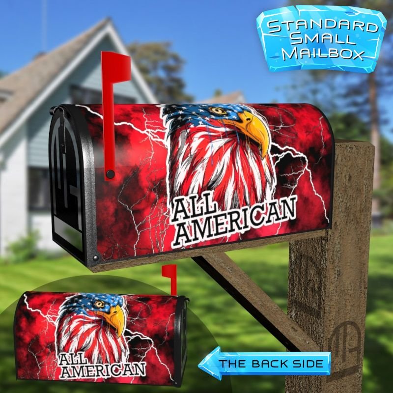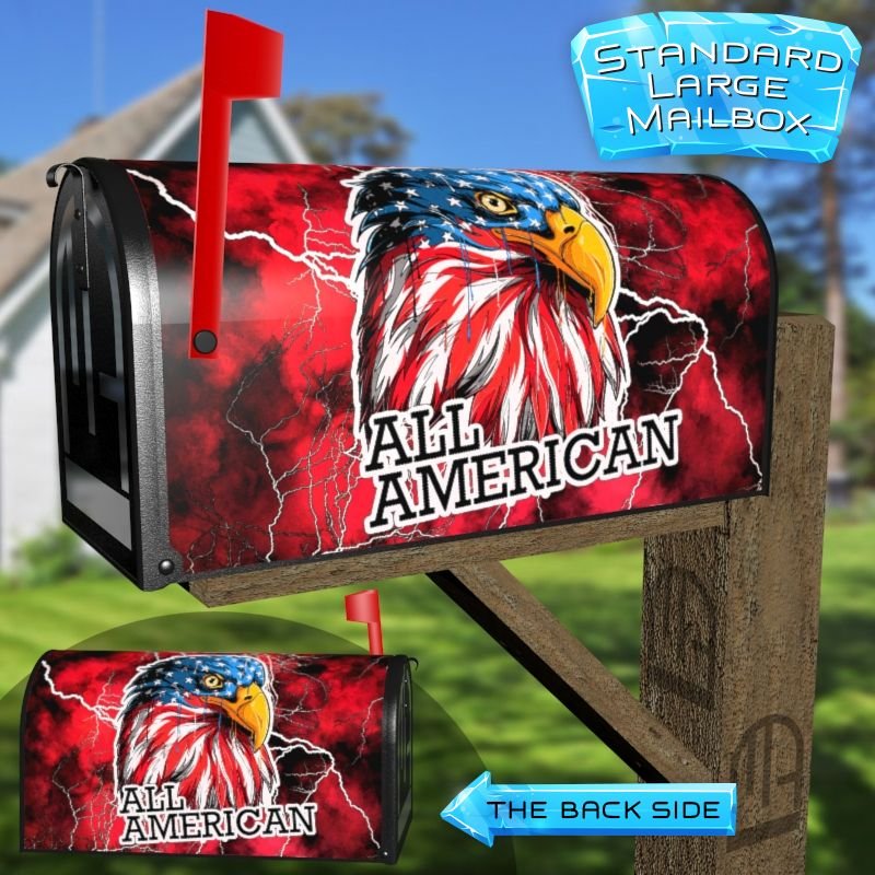 Dressing up your rural farm mailbox with the All American Eagle mailbox cover is an easy way to convert it into a unique and special item. These covers require a smooth surface, so they are compatible with rural farm mailboxes that do not have any embossed decorations or signs. Magnetic mailbox covers work with steel boxes only, while self-adhesive vinyl covers are available for aluminum, plastic and steel boxes. If your mailbox is not compatible with these covers, you can purchase a brand new mailbox with a preinstalled cover. Additionally, you have the option to create a custom rural farm mailbox cover with your own pictures, name, street number, etc.