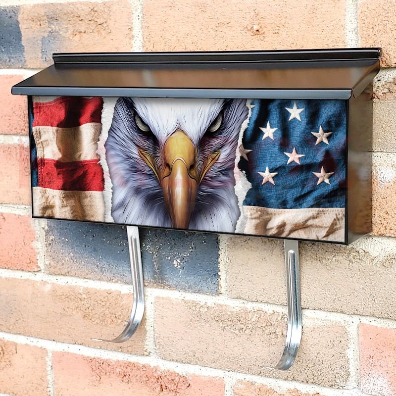 Applying your American Eagle and Flags #2 townhouse / ranch mailbox cover it’s pretty easy to convert your mailbox to a special and unique item. These covers require a flat surface, so they work with townhouse / ranch mailboxes that do not have any embossed decoration or signs. Magnetic mailbox covers work with steel boxes, for aluminum and plastic boxes we offer the self-adhesive vinyl covers. In case your mailbox doesn’t work with these covers, you can purchase the preinstalled cover on a brand new mailbox as well. Also, you can create your custom townhouse / ranch mailbox cover using you own pictures, adding your name, street number, etc.