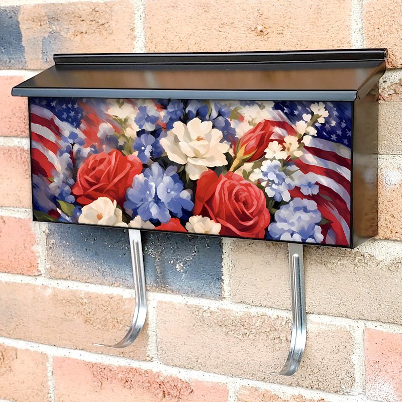 Applying your American Flags and Flowers townhouse / ranch mailbox cover it’s pretty easy to convert your mailbox to a special and unique item. These covers require a flat surface, so they work with townhouse / ranch mailboxes that do not have any embossed decoration or signs. Magnetic mailbox covers work with steel boxes, for aluminum and plastic boxes we offer the self-adhesive vinyl covers. In case your mailbox doesn’t work with these covers, you can purchase the preinstalled cover on a brand new mailbox as well. Also, you can create your custom townhouse / ranch mailbox cover using you own pictures, adding your name, street number, etc.