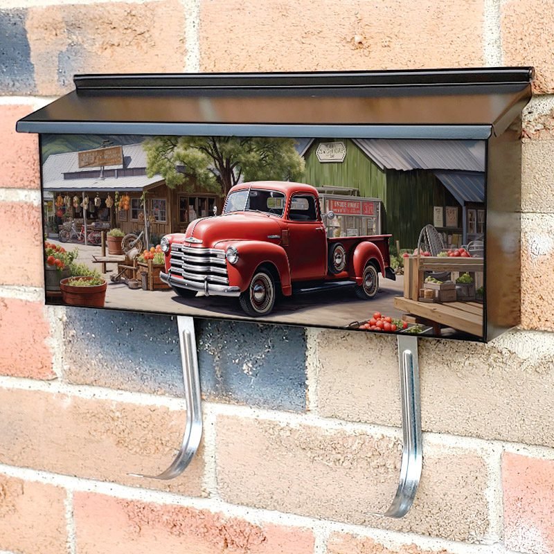 Applying your American Old Red Vintage Retro Truck at the Farmers Market townhouse / ranch mailbox cover it’s pretty easy to convert your mailbox to a special and unique item. These covers require a flat surface, so they work with townhouse / ranch mailboxes that do not have any embossed decoration or signs. Magnetic mailbox covers work with steel boxes, for aluminum and plastic boxes we offer the self-adhesive vinyl covers. In case your mailbox doesn’t work with these covers, you can purchase the preinstalled cover on a brand new mailbox as well. Also, you can create your custom townhouse / ranch mailbox cover using you own pictures, adding your name, street number, etc.