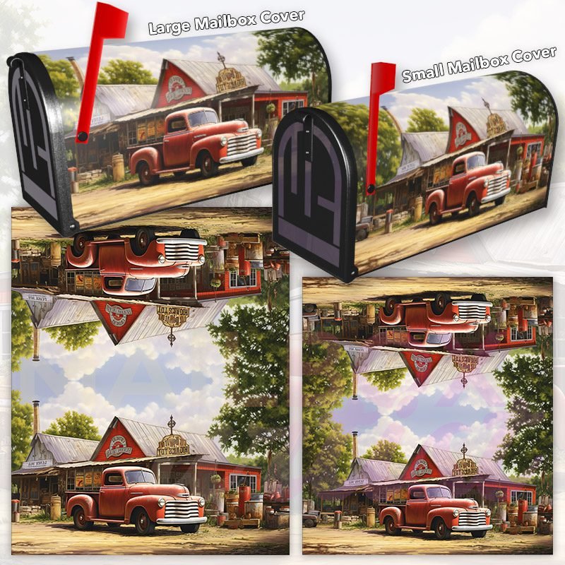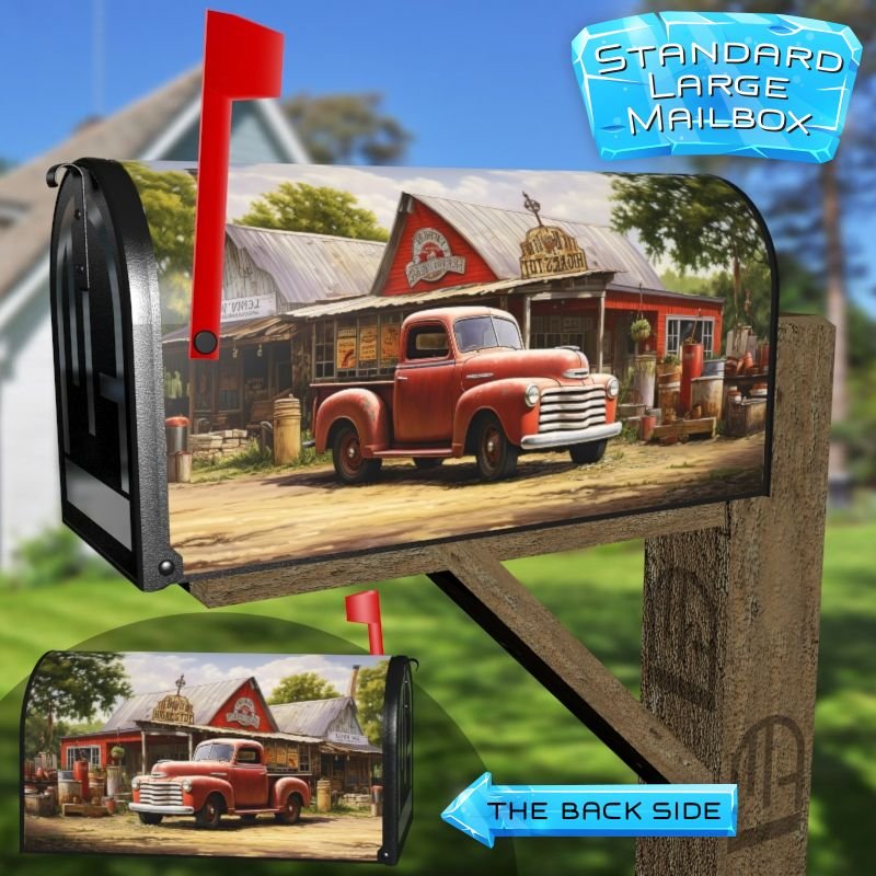 Dressing up your rural farm mailbox with the American Old Red Vintage Retro Truck on the Street mailbox cover is an easy way to convert it into a unique and special item. These covers require a smooth surface, so they are compatible with rural farm mailboxes that do not have any embossed decorations or signs. Magnetic mailbox covers work with steel boxes only, while self-adhesive vinyl covers are available for aluminum, plastic and steel boxes. If your mailbox is not compatible with these covers, you can purchase a brand new mailbox with a preinstalled cover. Additionally, you have the option to create a custom rural farm mailbox cover with your own pictures, name, street number, etc.