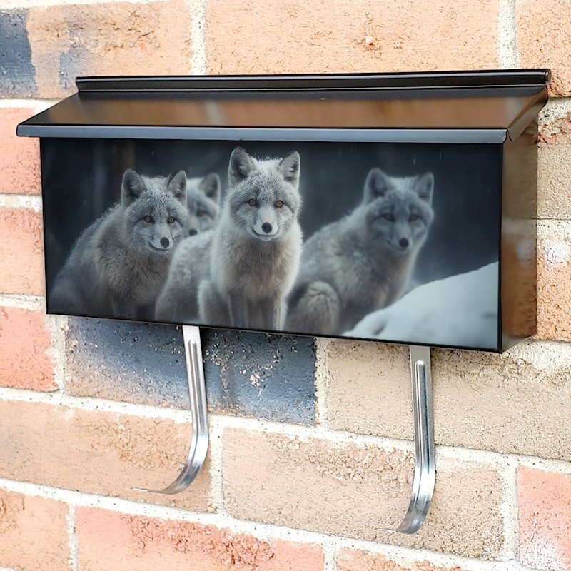Applying your Arctic Wolf Pack Poses For Snowy Portrait townhouse / ranch mailbox cover it’s pretty easy to convert your mailbox to a special and unique item. These covers require a flat surface, so they work with townhouse / ranch mailboxes that do not have any embossed decoration or signs. Magnetic mailbox covers work with steel boxes, for aluminum and plastic boxes we offer the self-adhesive vinyl covers. In case your mailbox doesn’t work with these covers, you can purchase the preinstalled cover on a brand new mailbox as well. Also, you can create your custom townhouse / ranch mailbox cover using you own pictures, adding your name, street number, etc.