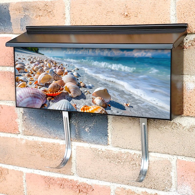 Applying your Array Of Colorful Seashells Scattered On The Beach townhouse / ranch mailbox cover it’s pretty easy to convert your mailbox to a special and unique item. These covers require a flat surface, so they work with townhouse / ranch mailboxes that do not have any embossed decoration or signs. Magnetic mailbox covers work with steel boxes, for aluminum and plastic boxes we offer the self-adhesive vinyl covers. In case your mailbox doesn’t work with these covers, you can purchase the preinstalled cover on a brand new mailbox as well. Also, you can create your custom townhouse / ranch mailbox cover using you own pictures, adding your name, street number, etc.
