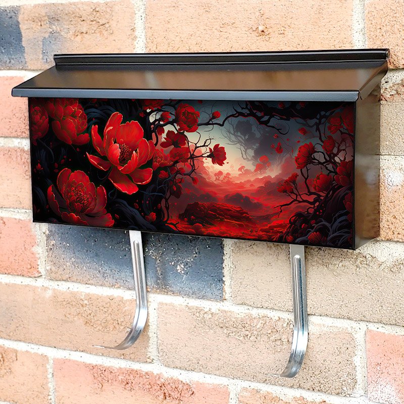 Applying your Asian Chinese Red Floral Plant townhouse / ranch mailbox cover it’s pretty easy to convert your mailbox to a special and unique item. These covers require a flat surface, so they work with townhouse / ranch mailboxes that do not have any embossed decoration or signs. Magnetic mailbox covers work with steel boxes, for aluminum and plastic boxes we offer the self-adhesive vinyl covers. In case your mailbox doesn’t work with these covers, you can purchase the preinstalled cover on a brand new mailbox as well. Also, you can create your custom townhouse / ranch mailbox cover using you own pictures, adding your name, street number, etc.