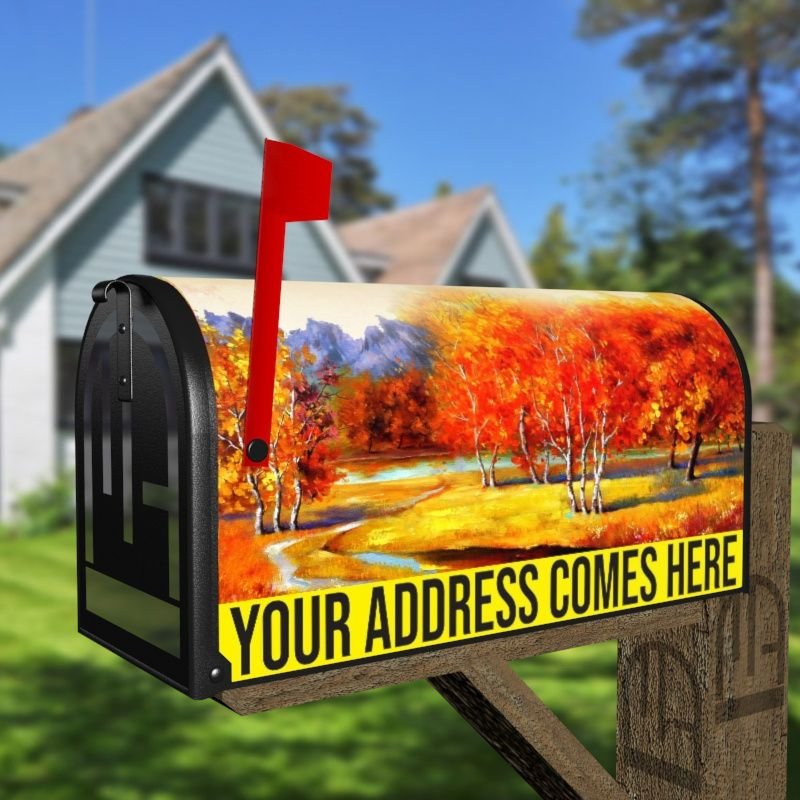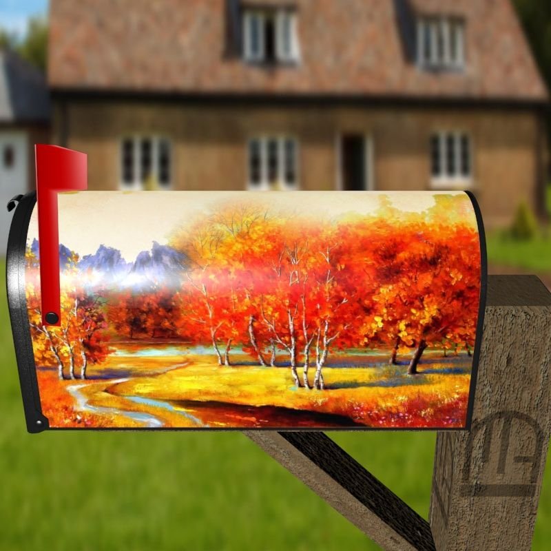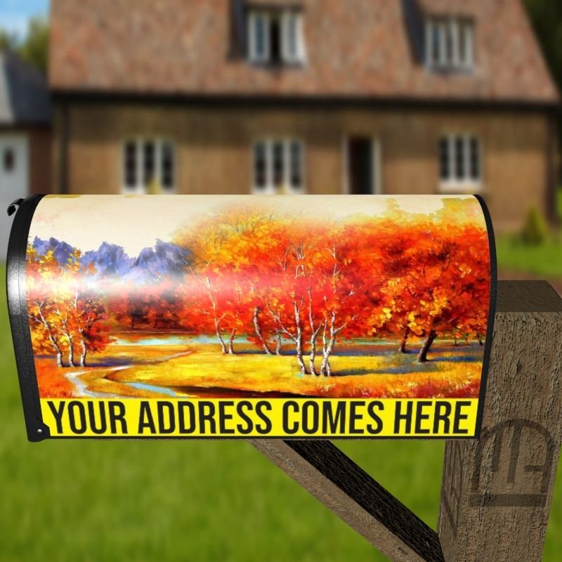Grab this creative Autumn Countryside rural/curbside/farm mailbox cover as self adhesive vinyl or magnetic cover. Our magnetic covers have the magnetic surface under the whole design, not only two magnet strips like in cheaper products. We also offer both the self adhesive and the magnetic covers with regular opaque white vinyl or reflective vinyl which works the same way as the licence plates or road signs; pretty visible at night. We make these covers for both large and small mailboxes.