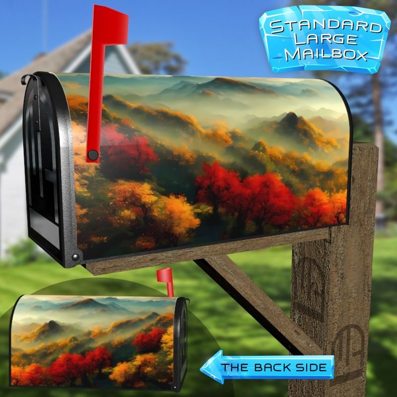 Dressing up your rural farm mailbox with the Autumn in China mailbox cover is an easy way to convert it into a unique and special item. These covers require a smooth surface, so they are compatible with rural farm mailboxes that do not have any embossed decorations or signs. Magnetic mailbox covers work with steel boxes only, while self-adhesive vinyl covers are available for aluminum, plastic and steel boxes. If your mailbox is not compatible with these covers, you can purchase a brand new mailbox with a preinstalled cover. Additionally, you have the option to create a custom rural farm mailbox cover with your own pictures, name, street number, etc.