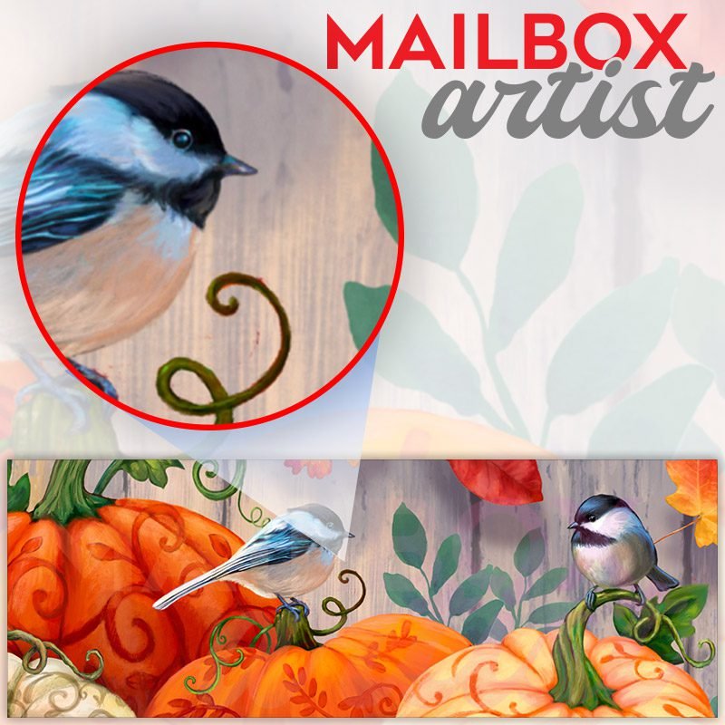 This Autumn Pumpkin Chickadees #2 mailbox design was created by Krisztina Soos