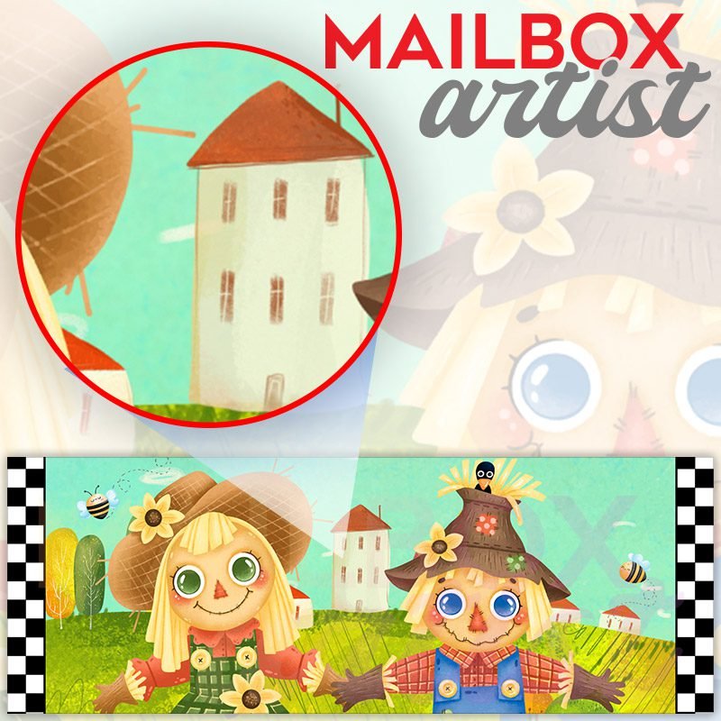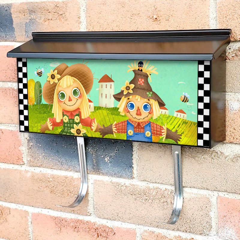 Applying your Autumn Scarecrow Couple townhouse / ranch mailbox cover it’s pretty easy to convert your mailbox to a special and unique item. These covers require a flat surface, so they work with townhouse / ranch mailboxes that do not have any embossed decoration or signs. Magnetic mailbox covers work with steel boxes, for aluminum and plastic boxes we offer the self-adhesive vinyl covers. In case your mailbox doesn’t work with these covers, you can purchase the preinstalled cover on a brand new mailbox as well. Also, you can create your custom townhouse / ranch mailbox cover using you own pictures, adding your name, street number, etc.