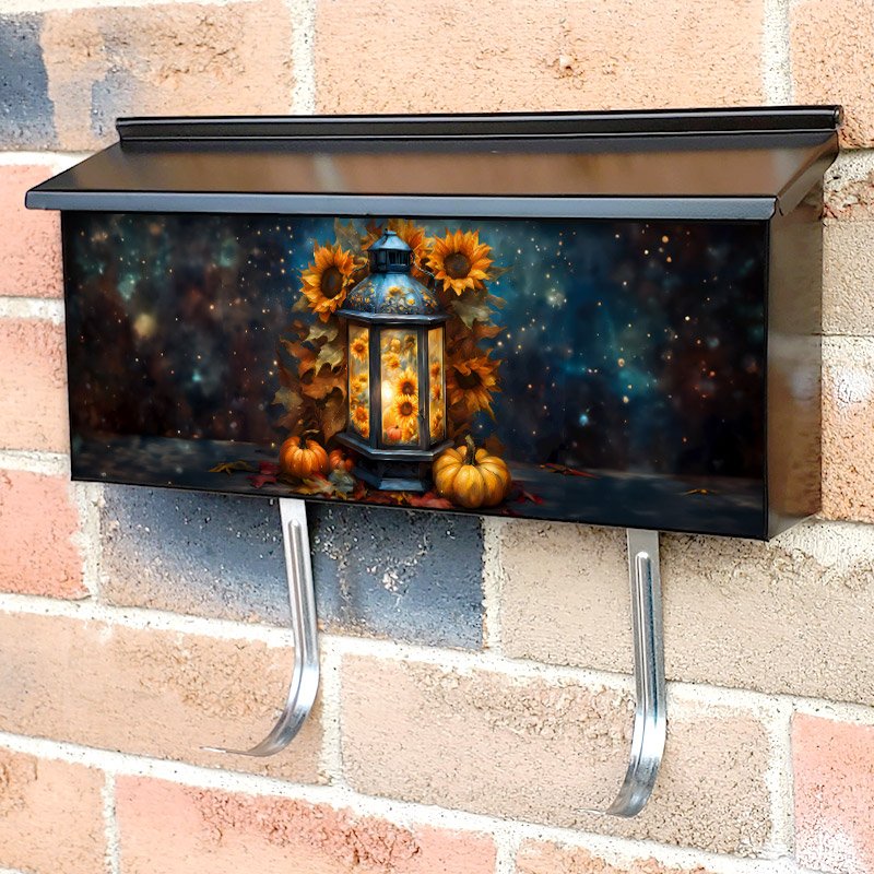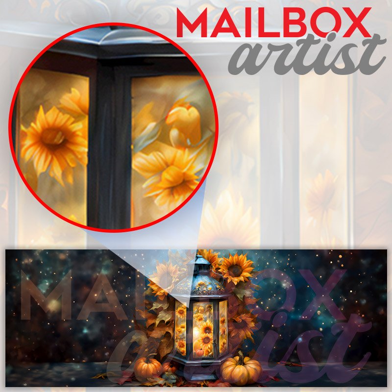 Applying your Autumn Sunflower Lantern townhouse / ranch mailbox cover it’s pretty easy to convert your mailbox to a special and unique item. These covers require a flat surface, so they work with townhouse / ranch mailboxes that do not have any embossed decoration or signs. Magnetic mailbox covers work with steel boxes, for aluminum and plastic boxes we offer the self-adhesive vinyl covers. In case your mailbox doesn’t work with these covers, you can purchase the preinstalled cover on a brand new mailbox as well. Also, you can create your custom townhouse / ranch mailbox cover using you own pictures, adding your name, street number, etc.