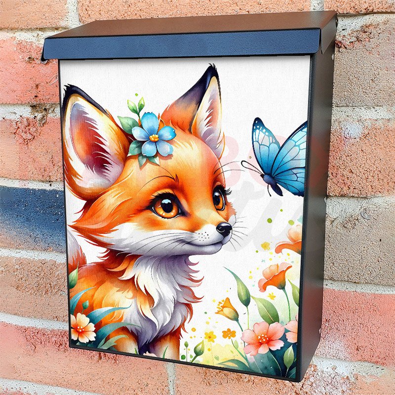 This Baby Fox and Butterfly mailbox design was created by Krisztina Soos