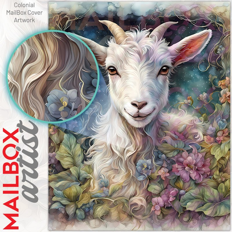 With this Baby Goat in the Flower Meadow colonial mailbox cover it’s pretty easy to convert your mailbox to a special and unique item. These covers require a flat surface, so they work with colonial mailboxes that do not have any embossed decoration or signs. Magnetic mailbox covers work with steel colonial boxes only, while self-adhesive vinyl covers are available for aluminum, plastic and steel boxes. We also offer both self-adhesive and magnetic covers with regular opaque white vinyl or reflective vinyl, which works similarly to license plates or road signs. The reflective option makes the entire cover’s surface reflective, ensuring visibility at night. In case your mailbox doesn’t work with these covers, you can purchase the preinstalled cover on a brand new mailbox as well. Also, you can create your custom colonial mailbox cover using you own pictures, adding your name, street number, etc.