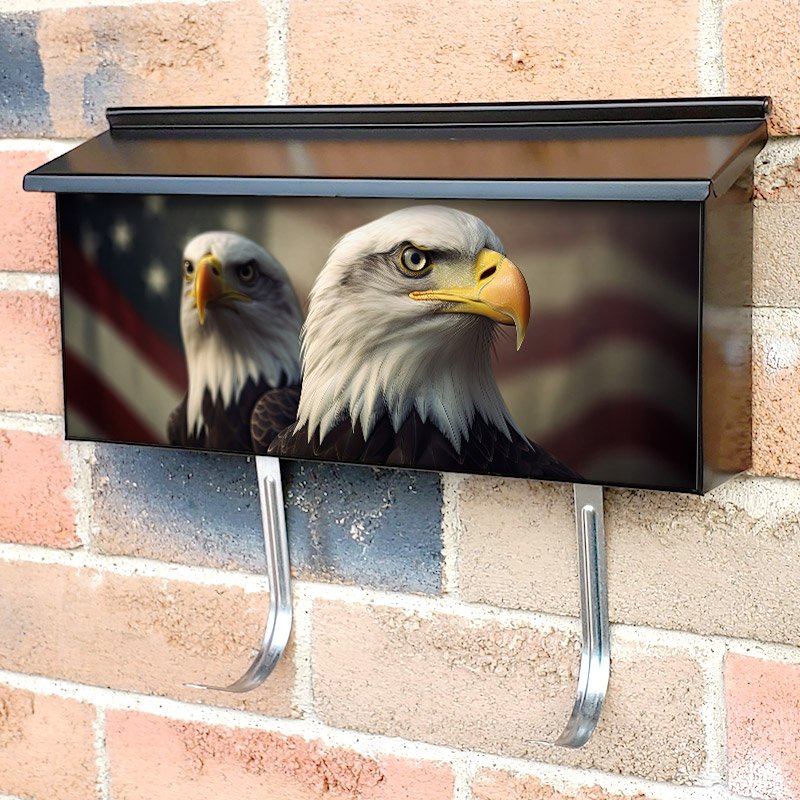 Applying your Bald Eagle With Usa Flag In The Background townhouse / ranch mailbox cover it’s pretty easy to convert your mailbox to a special and unique item. These covers require a flat surface, so they work with townhouse / ranch mailboxes that do not have any embossed decoration or signs. Magnetic mailbox covers work with steel boxes, for aluminum and plastic boxes we offer the self-adhesive vinyl covers. In case your mailbox doesn’t work with these covers, you can purchase the preinstalled cover on a brand new mailbox as well. Also, you can create your custom townhouse / ranch mailbox cover using you own pictures, adding your name, street number, etc.