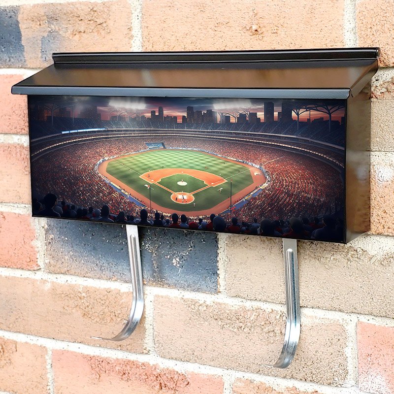 Applying your Baseball Game Sport Arena 1 townhouse / ranch mailbox cover it’s pretty easy to convert your mailbox to a special and unique item. These covers require a flat surface, so they work with townhouse / ranch mailboxes that do not have any embossed decoration or signs. Magnetic mailbox covers work with steel boxes, for aluminum and plastic boxes we offer the self-adhesive vinyl covers. In case your mailbox doesn’t work with these covers, you can purchase the preinstalled cover on a brand new mailbox as well. Also, you can create your custom townhouse / ranch mailbox cover using you own pictures, adding your name, street number, etc.