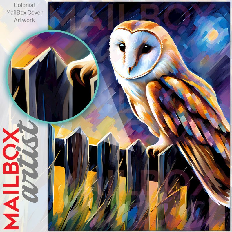 Beautiful Barn Owl at Night Colonial Mailbox Cover