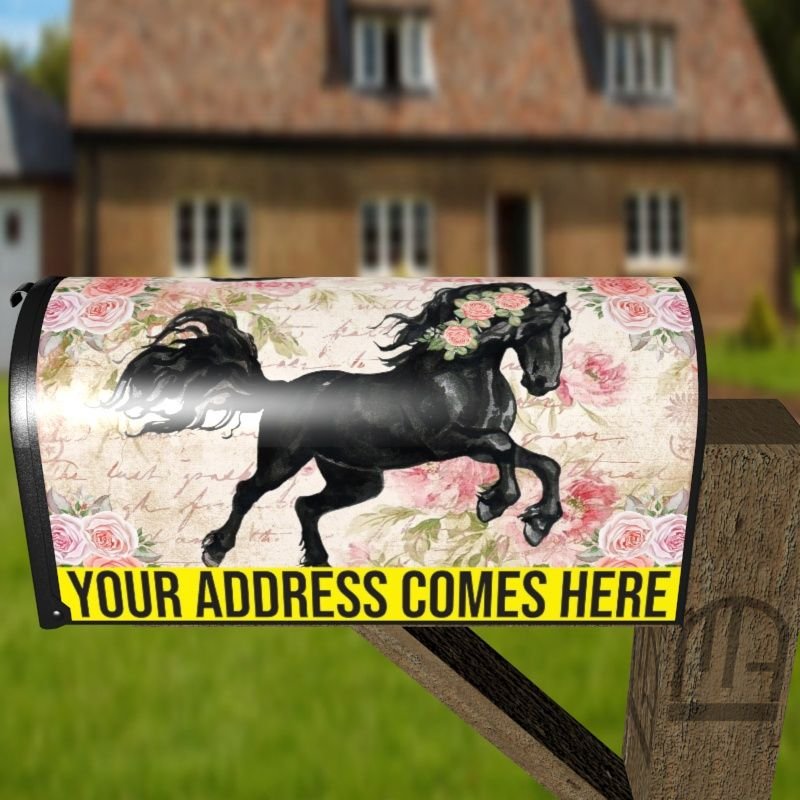 Grab this creative Beautiful Black Horse and Roses #3 rural/curbside/farm mailbox cover as self adhesive vinyl or magnetic cover. Our magnetic covers have the magnetic surface under the whole design, not only two magnet strips like in cheaper products. We also offer both the self adhesive and the magnetic covers with regular opaque white vinyl or reflective vinyl which works the same way as the licence plates or road signs; pretty visible at night. We make these covers for both large and small mailboxes.