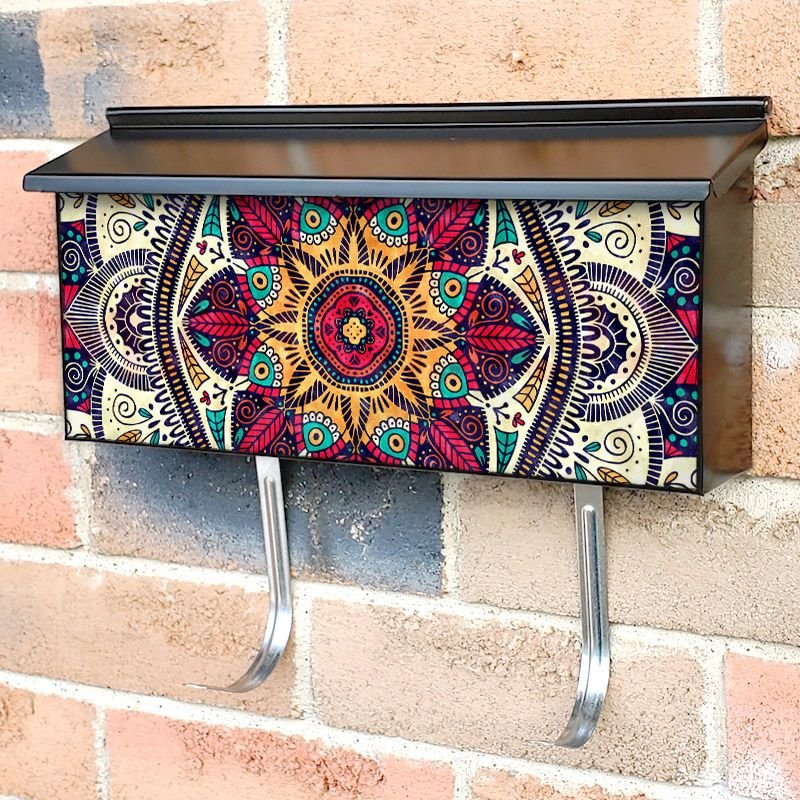 Applying your Beautiful Bohemian Mandala #5 townhouse / ranch mailbox cover it’s pretty easy to convert your mailbox to a special and unique item. These covers require a flat surface, so they work with townhouse / ranch mailboxes that do not have any embossed decoration or signs. Magnetic mailbox covers work with steel boxes, for aluminum and plastic boxes we offer the self-adhesive vinyl covers. In case your mailbox doesn’t work with these covers, you can purchase the preinstalled cover on a brand new mailbox as well. Also, you can create your custom townhouse / ranch mailbox cover using you own pictures, adding your name, street number, etc.