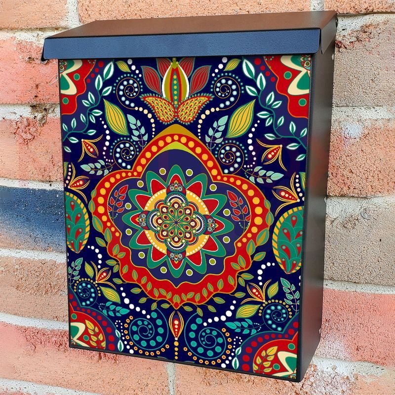 With this Beautiful Bohemian Mandala #7 colonial mailbox cover it’s pretty easy to convert your mailbox to a special and unique item. These covers require a flat surface, so they work with colonial mailboxes that do not have any embossed decoration or signs. In case your mailbox doesn’t work with these covers, you can purchase the preinstalled cover on a brand new mailbox as well. Also, you can create your custom colonial mailbox cover using you own pictures, adding your name, street number, etc.