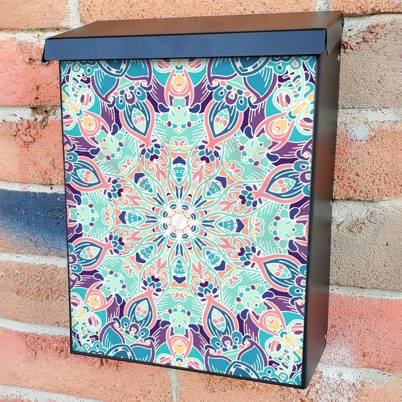 With this Beautiful Bohemian Mandala #8 colonial mailbox cover it’s pretty easy to convert your mailbox to a special and unique item. These covers require a flat surface, so they work with colonial mailboxes that do not have any embossed decoration or signs. In case your mailbox doesn’t work with these covers, you can purchase the preinstalled cover on a brand new mailbox as well. Also, you can create your custom colonial mailbox cover using you own pictures, adding your name, street number, etc.