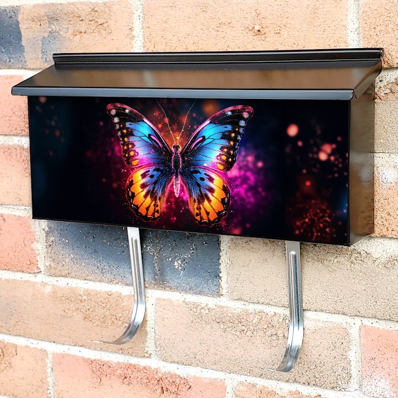 Applying your Beautiful Butterfly With Glowing Effect townhouse / ranch mailbox cover it’s pretty easy to convert your mailbox to a special and unique item. These covers require a flat surface, so they work with townhouse / ranch mailboxes that do not have any embossed decoration or signs. Magnetic mailbox covers work with steel boxes, for aluminum and plastic boxes we offer the self-adhesive vinyl covers. In case your mailbox doesn’t work with these covers, you can purchase the preinstalled cover on a brand new mailbox as well. Also, you can create your custom townhouse / ranch mailbox cover using you own pictures, adding your name, street number, etc.