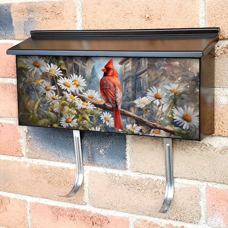 Applying your Beautiful Cardinal and Daisies townhouse / ranch mailbox cover it’s pretty easy to convert your mailbox to a special and unique item. These covers require a flat surface, so they work with townhouse / ranch mailboxes that do not have any embossed decoration or signs. Magnetic mailbox covers work with steel boxes, for aluminum and plastic boxes we offer the self-adhesive vinyl covers. In case your mailbox doesn’t work with these covers, you can purchase the preinstalled cover on a brand new mailbox as well. Also, you can create your custom townhouse / ranch mailbox cover using you own pictures, adding your name, street number, etc.