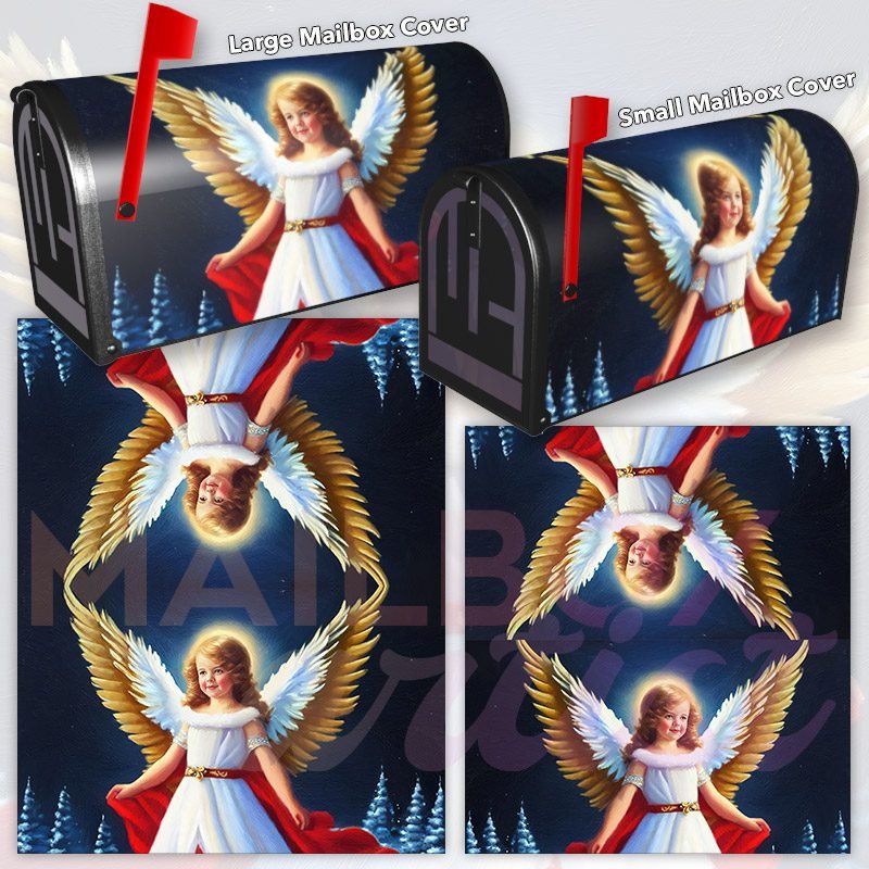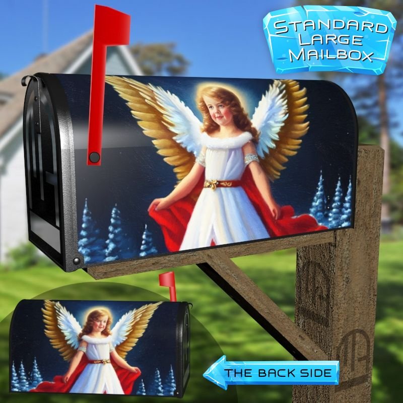 Dressing up your rural farm mailbox with the Beautiful Christmas Angel #6 mailbox cover is an easy way to convert it into a unique and special item. These covers require a smooth surface, so they are compatible with rural farm mailboxes that do not have any embossed decorations or signs. Magnetic mailbox covers work with steel boxes only, while self-adhesive vinyl covers are available for aluminum, plastic and steel boxes. If your mailbox is not compatible with these covers, you can purchase a brand new mailbox with a preinstalled cover. Additionally, you have the option to create a custom rural farm mailbox cover with your own pictures, name, street number, etc.