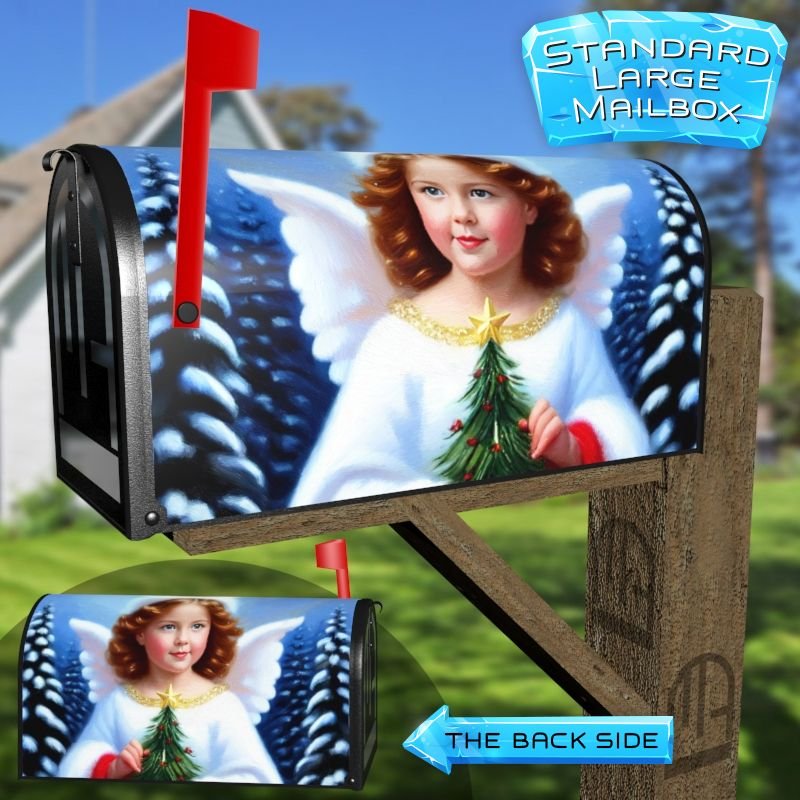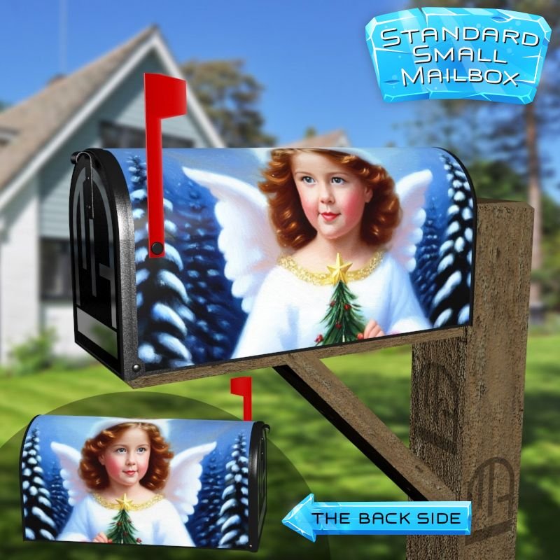 Dressing up your rural farm mailbox with the Beautiful Christmas Angel #7 mailbox cover is an easy way to convert it into a unique and special item. These covers require a smooth surface, so they are compatible with rural farm mailboxes that do not have any embossed decorations or signs. Magnetic mailbox covers work with steel boxes only, while self-adhesive vinyl covers are available for aluminum, plastic and steel boxes. If your mailbox is not compatible with these covers, you can purchase a brand new mailbox with a preinstalled cover. Additionally, you have the option to create a custom rural farm mailbox cover with your own pictures, name, street number, etc.