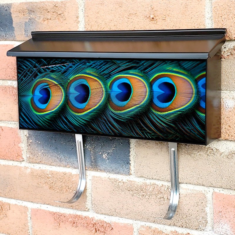 Applying your Beautiful Colorful Peacock Feathers townhouse / ranch mailbox cover it’s pretty easy to convert your mailbox to a special and unique item. These covers require a flat surface, so they work with townhouse / ranch mailboxes that do not have any embossed decoration or signs. Magnetic mailbox covers work with steel boxes, for aluminum and plastic boxes we offer the self-adhesive vinyl covers. In case your mailbox doesn’t work with these covers, you can purchase the preinstalled cover on a brand new mailbox as well. Also, you can create your custom townhouse / ranch mailbox cover using you own pictures, adding your name, street number, etc.