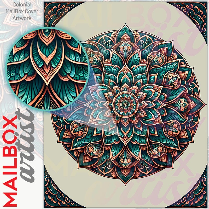 Beautiful Copper and Teal Mandala Colonial Mailbox Cover