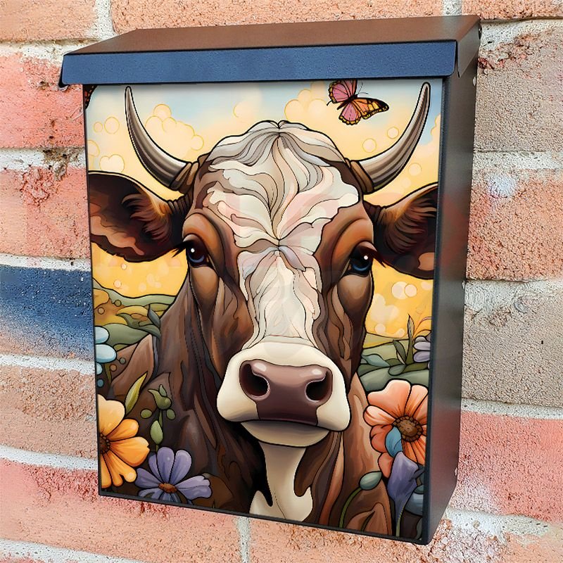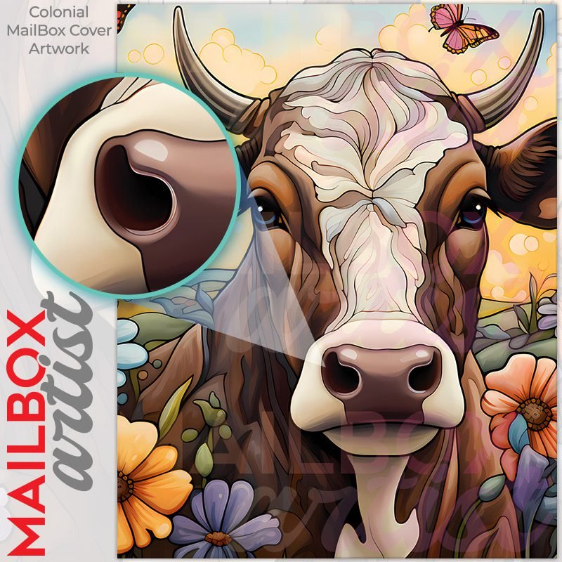 With this Beautiful Cow and Flowers #3 colonial mailbox cover it’s pretty easy to convert your mailbox to a special and unique item. These covers require a flat surface, so they work with colonial mailboxes that do not have any embossed decoration or signs. Magnetic mailbox covers work with steel colonial boxes only, while self-adhesive vinyl covers are available for aluminum, plastic and steel boxes. We also offer both self-adhesive and magnetic covers with regular opaque white vinyl or reflective vinyl, which works similarly to license plates or road signs. The reflective option makes the entire cover’s surface reflective, ensuring visibility at night. In case your mailbox doesn’t work with these covers, you can purchase the preinstalled cover on a brand new mailbox as well. Also, you can create your custom colonial mailbox cover using you own pictures, adding your name, street number, etc.