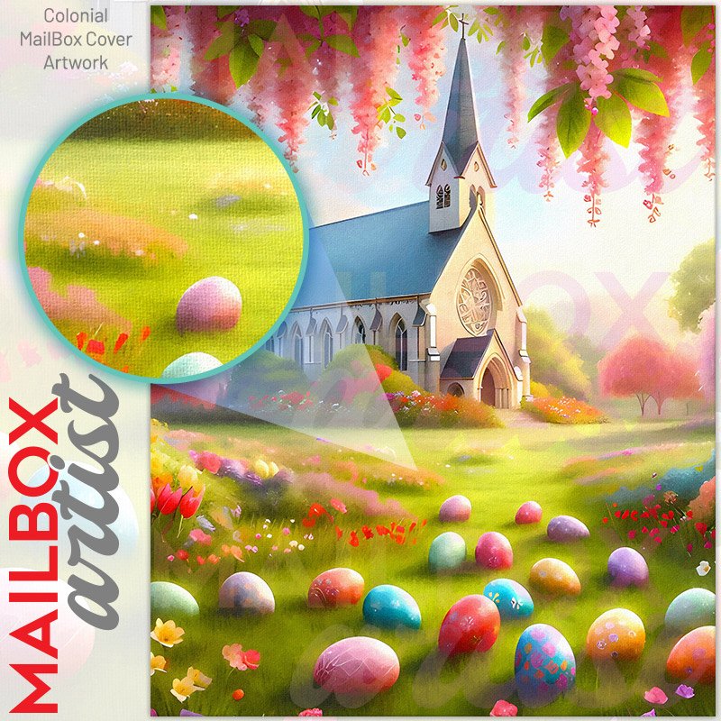 With this Beautiful Easter Church colonial mailbox cover it’s pretty easy to convert your mailbox to a special and unique item. These covers require a flat surface, so they work with colonial mailboxes that do not have any embossed decoration or signs. Magnetic mailbox covers work with steel colonial boxes only, while self-adhesive vinyl covers are available for aluminum, plastic and steel boxes. We also offer both self-adhesive and magnetic covers with regular opaque white vinyl or reflective vinyl, which works similarly to license plates or road signs. The reflective option makes the entire cover’s surface reflective, ensuring visibility at night. In case your mailbox doesn’t work with these covers, you can purchase the preinstalled cover on a brand new mailbox as well. Also, you can create your custom colonial mailbox cover using you own pictures, adding your name, street number, etc.