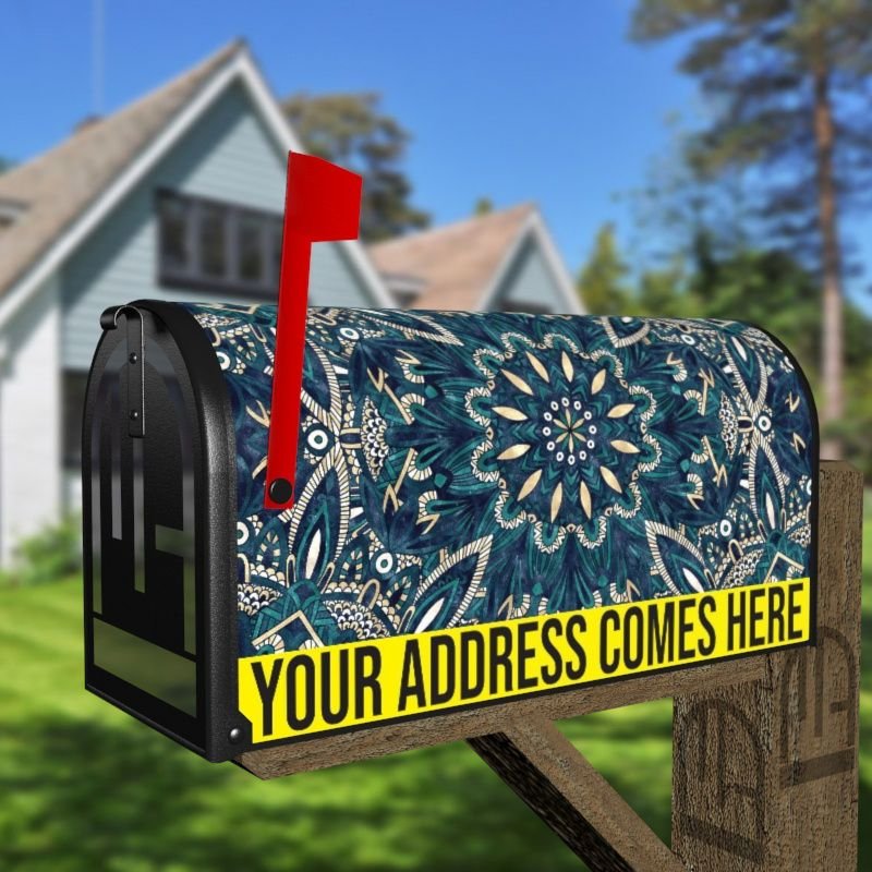 Grab this creative Beautiful Ethnic Native Boho Colorful Mandala Design #2 rural/curbside/farm mailbox cover as self adhesive vinyl or magnetic cover. Our magnetic covers have the magnetic surface under the whole design, not only two magnet strips like in cheaper products. We also offer both the self adhesive and the magnetic covers with regular opaque white vinyl or reflective vinyl which works the same way as the licence plates or road signs; pretty visible at night. We make these covers for both large and small mailboxes.