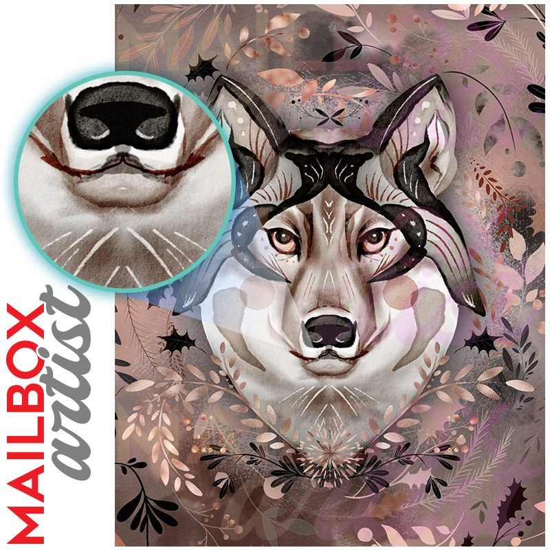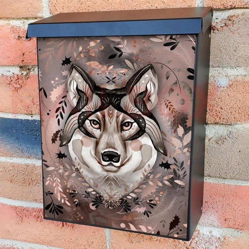 This Beautiful Ethnic Winter Wolf mailbox design was created by Krisztina Soos