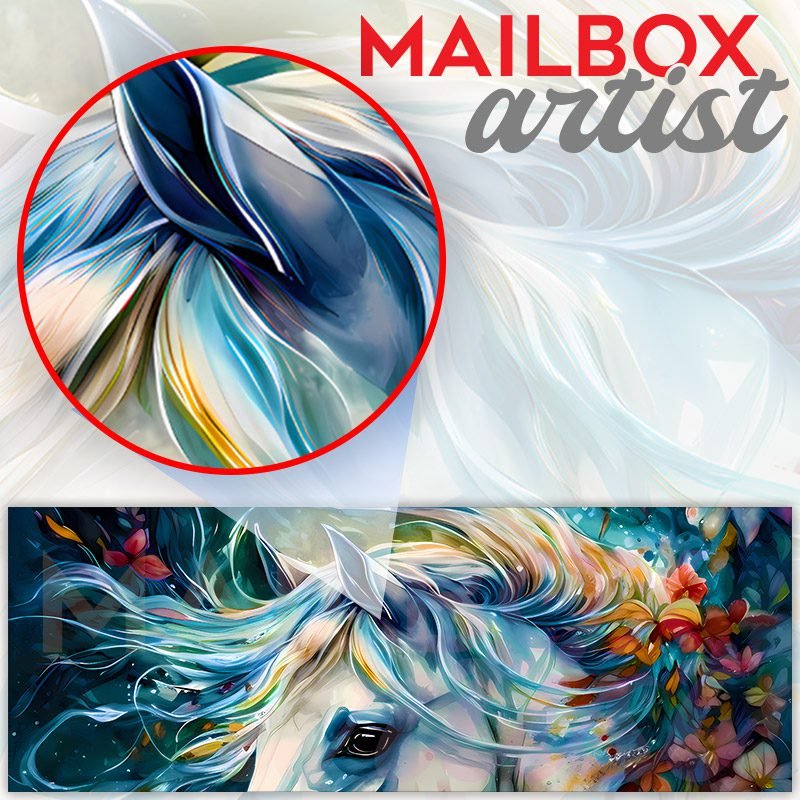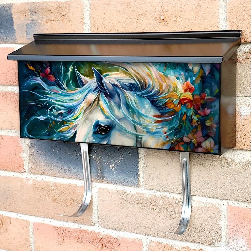 Applying your Beautiful Flower Horses #2 townhouse / ranch mailbox cover it’s pretty easy to convert your mailbox to a special and unique item. These covers require a flat surface, so they work with townhouse / ranch mailboxes that do not have any embossed decoration or signs. Magnetic mailbox covers work with steel boxes, for aluminum and plastic boxes we offer the self-adhesive vinyl covers. In case your mailbox doesn’t work with these covers, you can purchase the preinstalled cover on a brand new mailbox as well. Also, you can create your custom townhouse / ranch mailbox cover using you own pictures, adding your name, street number, etc.
