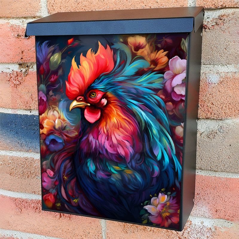 This Beautiful Flower Rooster mailbox design was created by Krisztina Soos