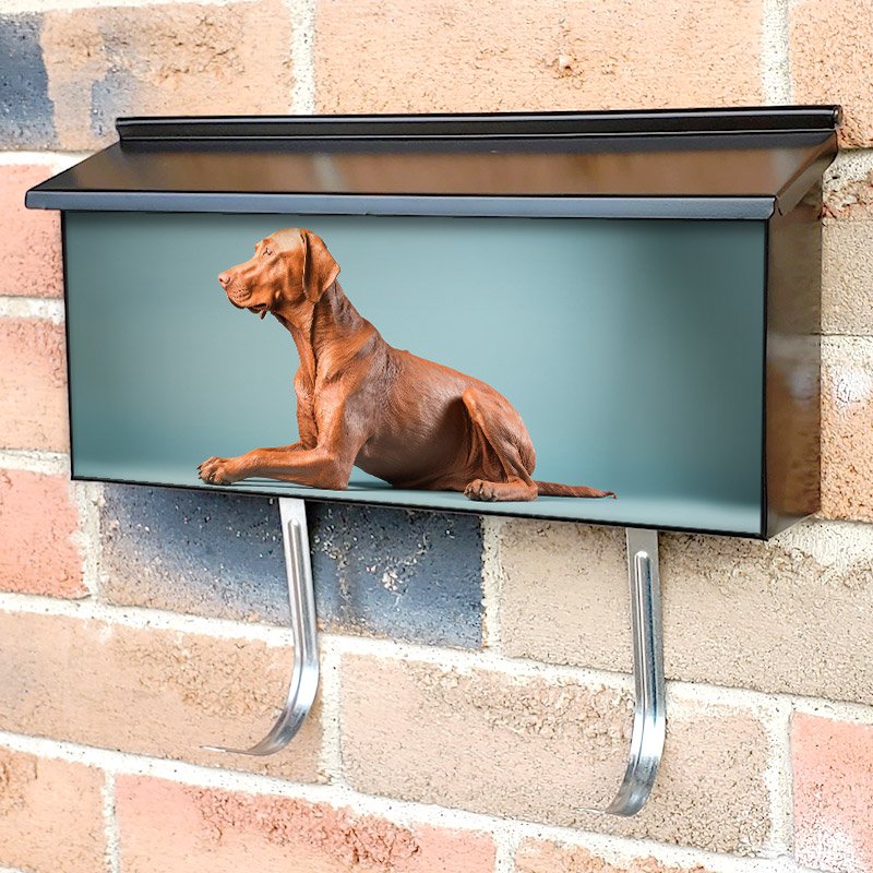 Applying your Beautiful Hungarian Vizsla Dog Full Body Studio Portrait On Blue Background townhouse / ranch mailbox cover it’s pretty easy to convert your mailbox to a special and unique item. These covers require a flat surface, so they work with townhouse / ranch mailboxes that do not have any embossed decoration or signs. Magnetic mailbox covers work with steel boxes, for aluminum and plastic boxes we offer the self-adhesive vinyl covers. In case your mailbox doesn’t work with these covers, you can purchase the preinstalled cover on a brand new mailbox as well. Also, you can create your custom townhouse / ranch mailbox cover using you own pictures, adding your name, street number, etc.