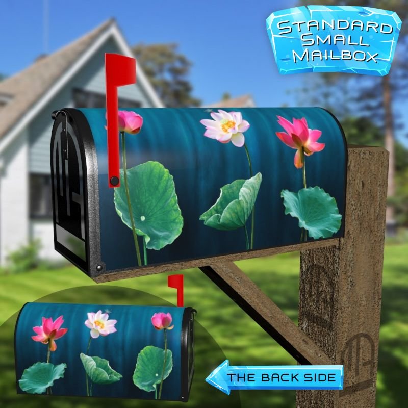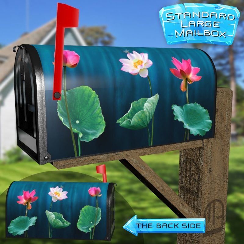 Dressing up your rural farm mailbox with the Beautiful Lotus Flowers mailbox cover is an easy way to convert it into a unique and special item. These covers require a smooth surface, so they are compatible with rural farm mailboxes that do not have any embossed decorations or signs. Magnetic mailbox covers work with steel boxes only, while self-adhesive vinyl covers are available for aluminum, plastic and steel boxes. If your mailbox is not compatible with these covers, you can purchase a brand new mailbox with a preinstalled cover. Additionally, you have the option to create a custom rural farm mailbox cover with your own pictures, name, street number, etc.