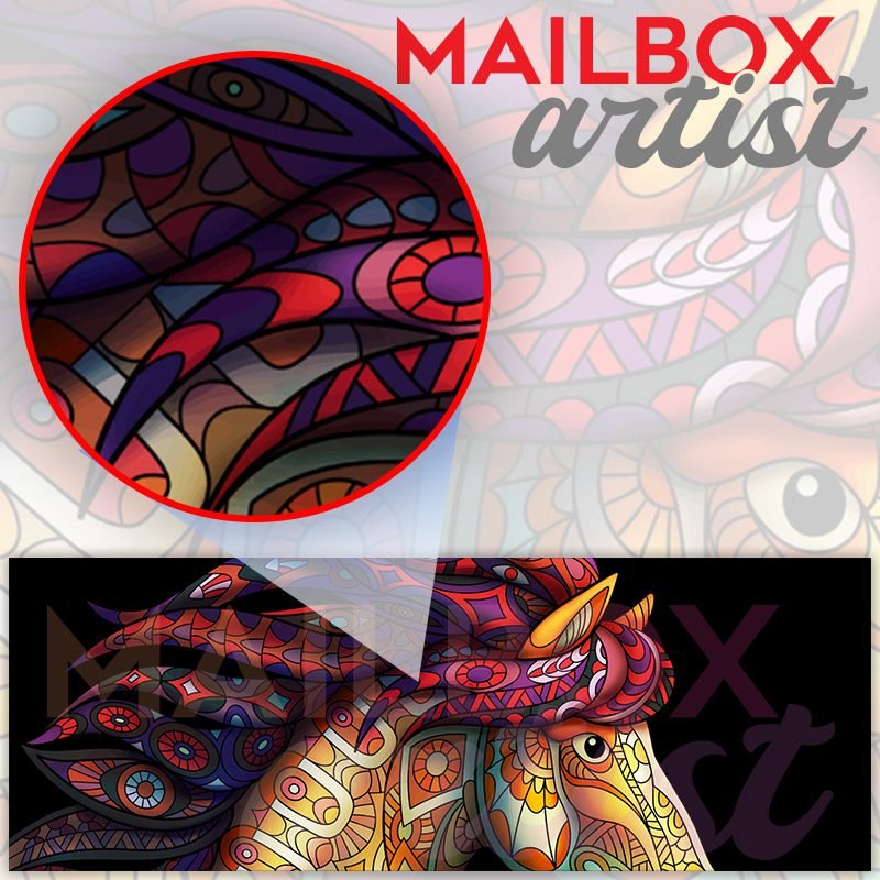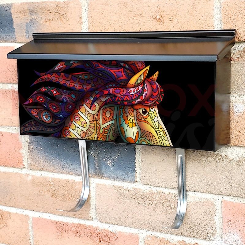 Applying your Beautiful Mandala Horse townhouse / ranch mailbox cover it’s pretty easy to convert your mailbox to a special and unique item. These covers require a flat surface, so they work with townhouse / ranch mailboxes that do not have any embossed decoration or signs. Magnetic mailbox covers work with steel boxes, for aluminum and plastic boxes we offer the self-adhesive vinyl covers. In case your mailbox doesn’t work with these covers, you can purchase the preinstalled cover on a brand new mailbox as well. Also, you can create your custom townhouse / ranch mailbox cover using you own pictures, adding your name, street number, etc.