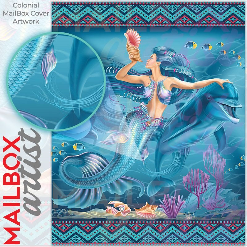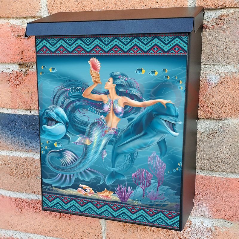 This Beautiful Mermaid and Dolphins mailbox design was created by Krisztina Soos