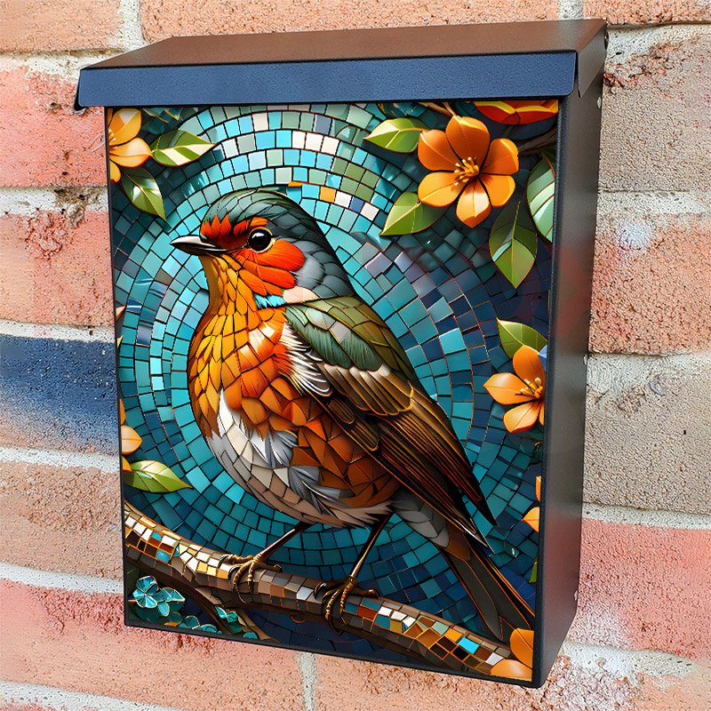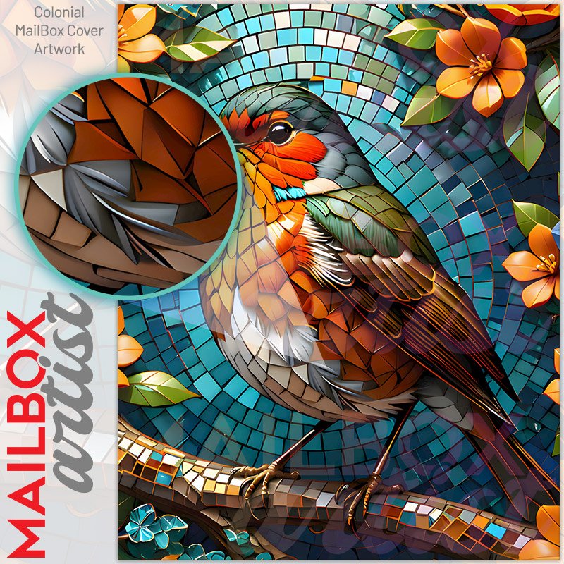 Beautiful Mosaic Robin Colonial Mailbox Cover